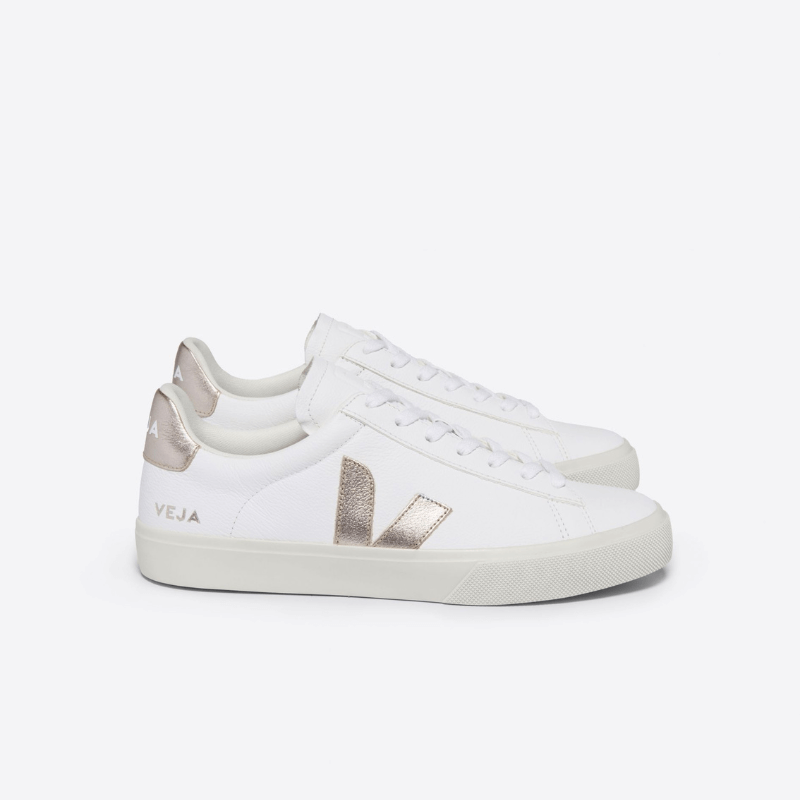 O Tênis Veja Campo Leather White Platine é a escolha certa para quem quer unir elegância e sustentabilidade. Feito com couro ChromeFree, seus detalhes em dourado platina no logo e painéis trazem um toque de exclusividade e modernidade, ideal para mulheres que valorizam design e qualidade.