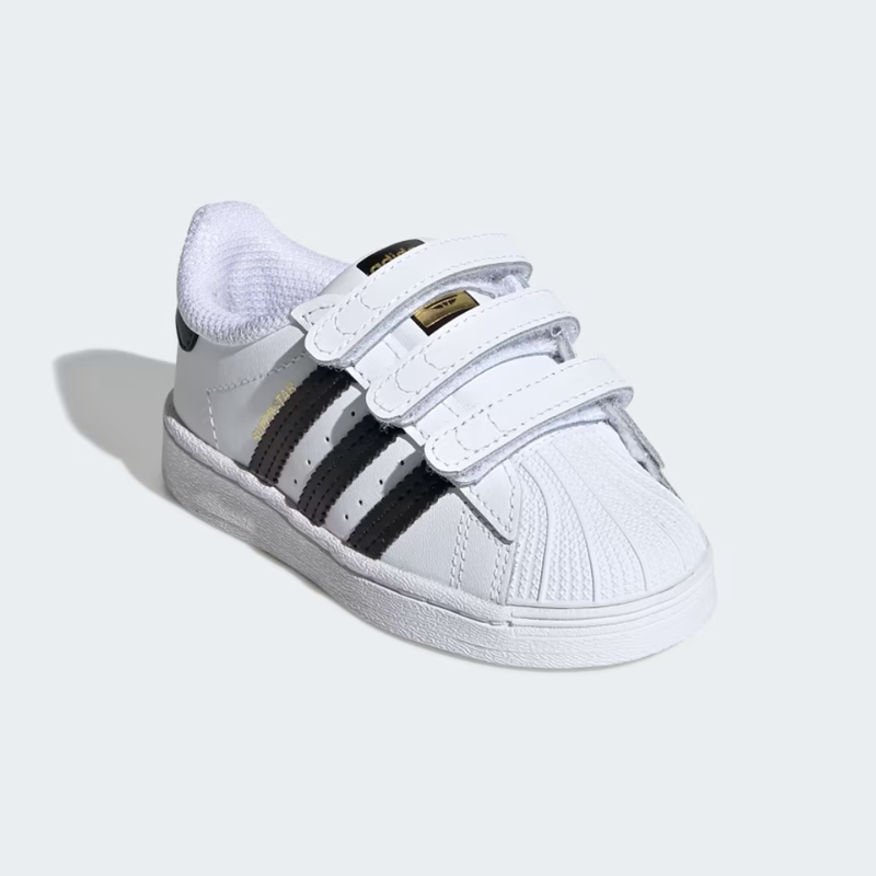 Com o tênis Adidas infantil, os pequenos exploradores podem começar sua jornada com estilo e conforto. O design amigável para bebês do Superstar oferece não apenas um visual icônico, mas também funcionalidades práticas, como fechos com tiras aderentes.