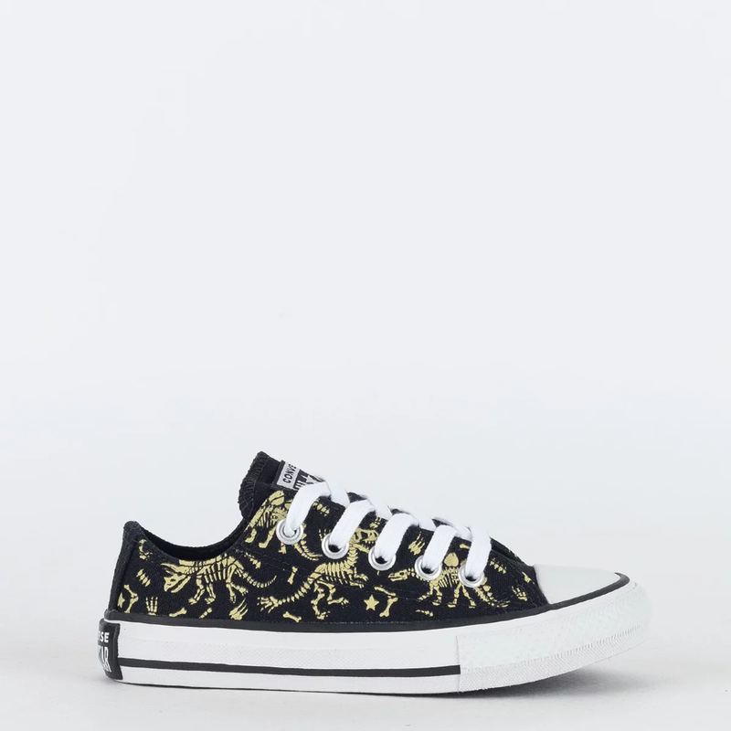 O Tênis Converse Kids Chuck Taylor All Star OX Dino Preto Glow é a escolha perfeita para as crianças que adoram aventuras cheias de estilo, mesmo no escuro. Com um design único que brilha no escuro, este tênis vai transformar as noites em verdadeiras jornadas mágicas.