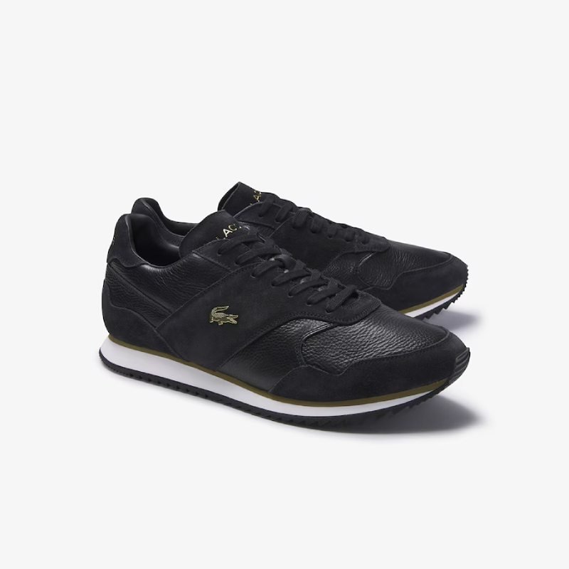 - Detalhes: Logo dourado de crocodilo na lateral e escrita Lacoste gravada na língua e no calcanhar.